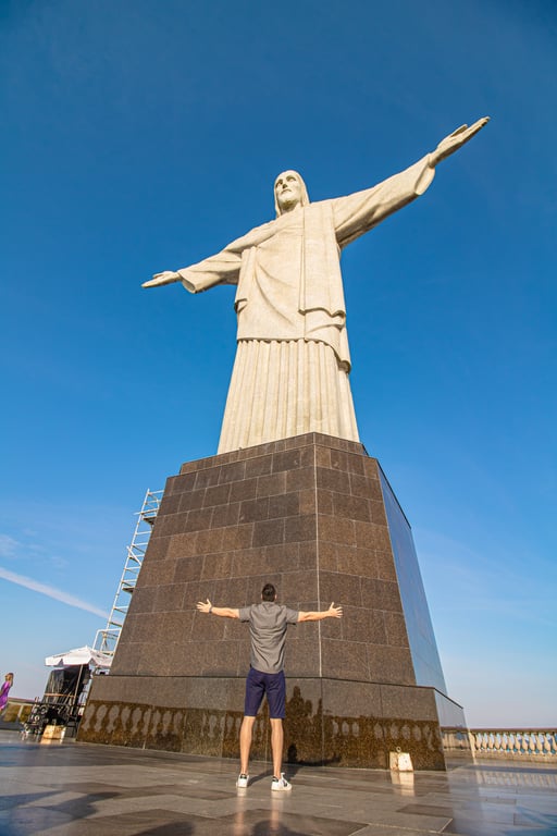 Em seguida, o tour segue para o Cristo Redentor, no primeiro horário, garantindo que haja menos pessoas e mais tranquilidade para apreciar a majestosidade desse icônico monumento. Os visitantes têm a oportunidade de admirar o Cristo de perto e aproveitar a vista panorâmica deslumbrante da cidade.